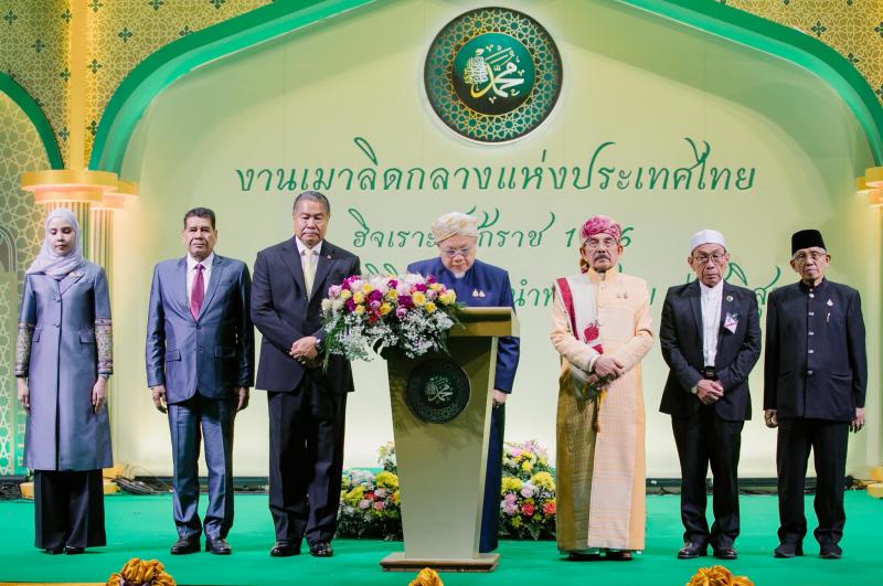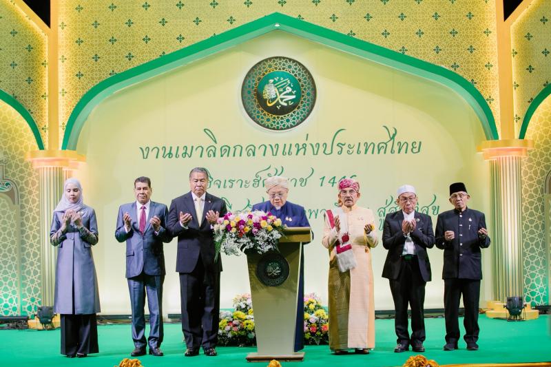 On April 20, 2025 at 9:30 p.m., the closing ceremony of the Central Maulid of Thailand for the year 1446 AH was honored by Mr. Plakorn Suwannarat, Privy Councilor, as the chairman of the closing ceremony and presented prizes and souvenirs to participants of the event over the past 3 days. Mr. Arun Boonchum, the Chularatchamontri/Chairman of the Central Maulid of Thailand, Pol. Maj. Gen. Surin Palare, Secretary-General of the Central Islamic Council of Thailand/Chairman of the Central Maulid of Thailand for the year 1446 AH, Ms. Sabida Thaiset, Deputy Minister of Interior, Assoc. Prof. Dr. Pakorn Priyakorn, Secretary of the Organizing Committee, Mr. Prasarn Sricharoen, Chairman of the Advisory Board of the Chularatchamontri, the Central Islamic Council of Thailand, the Central Maulid of Thailand Organizing Committee, and other distinguished guests joined the closing ceremony at the Chalermprakiat Business Administration Center, Khlong Kao Road, Nong Chok District, Bangkok.