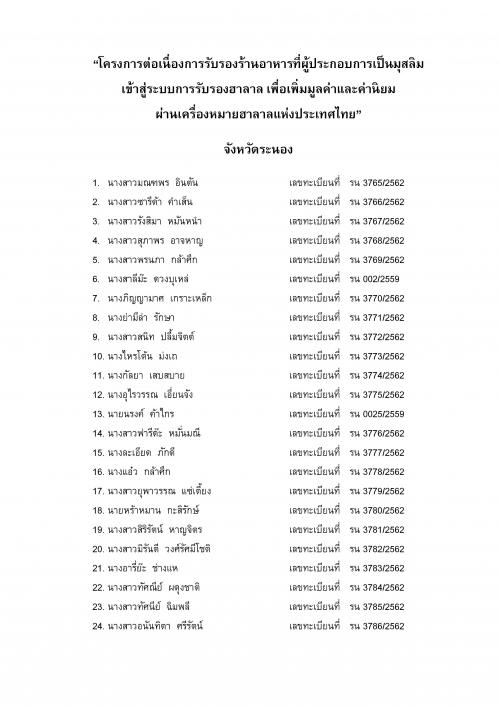 รายชื่อร้านอาหารที่เข้าโครงการฯ 2