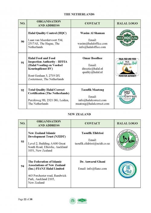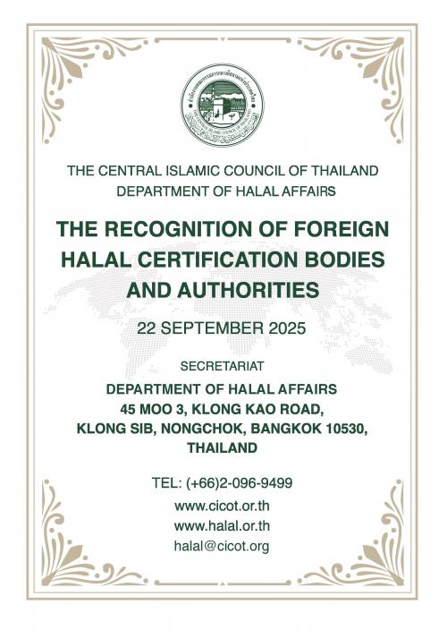 ประกาศ !!! รายชื่อองค์กรรับรองฮาลาลต่างประเทศที่ได้รับการยอมรับจากสำนักงานคณะกรรมการกลางอิสลามแห่งประเทศไทย