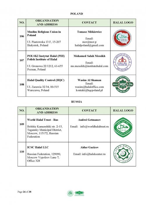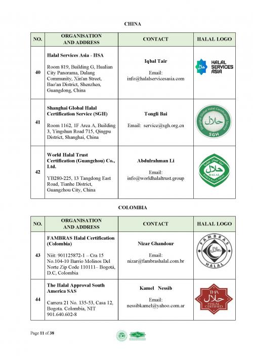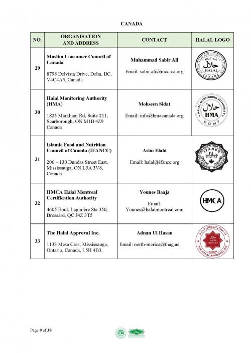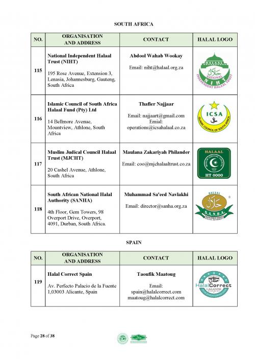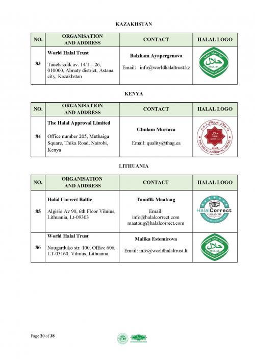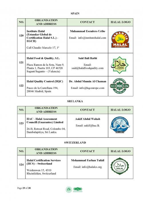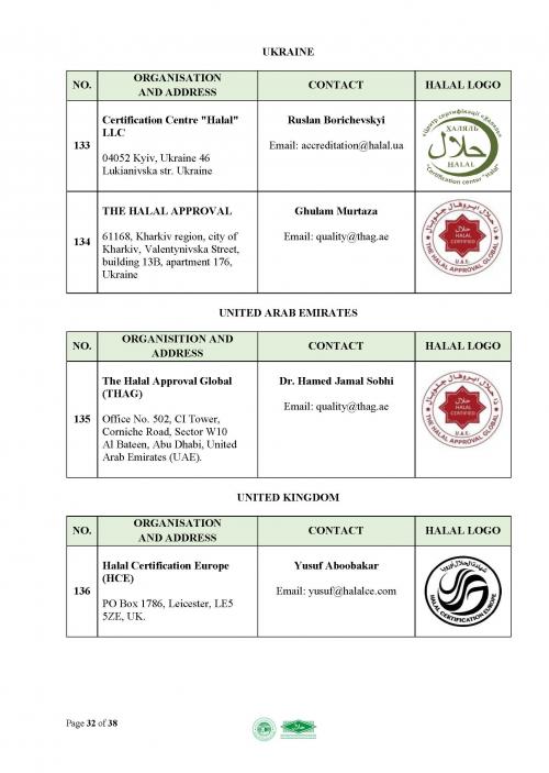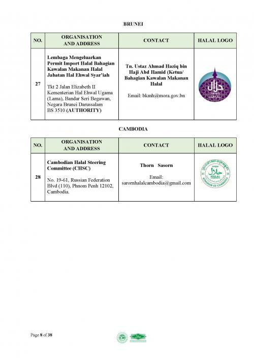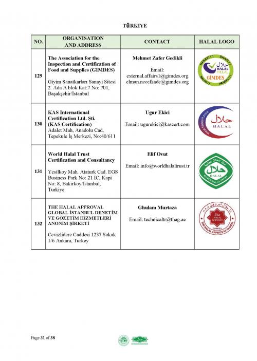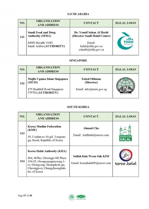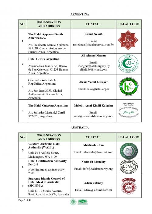 สำนักงานคณะกรรมการกลางอิสลามแห่งประเทศไทย (สกอท.) ขอประกาศรายชื่อหน่วยงานที่ได้รับการรับรองตามรายชื่อประเทศต่อไปนี้