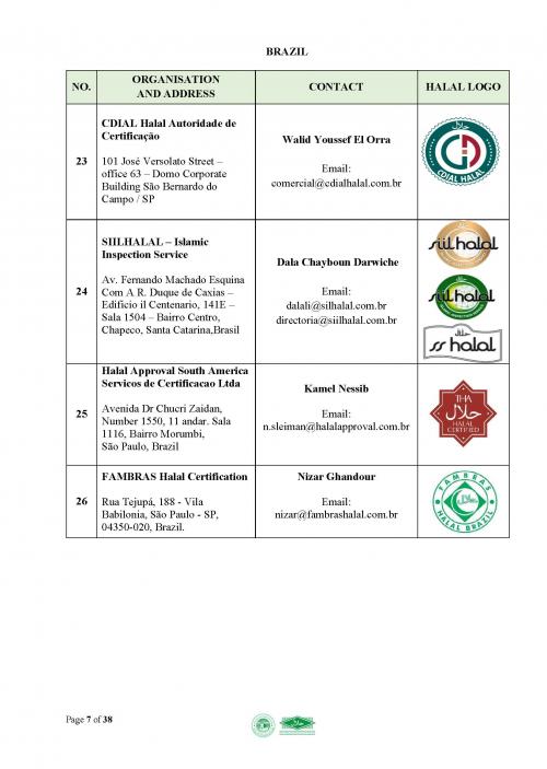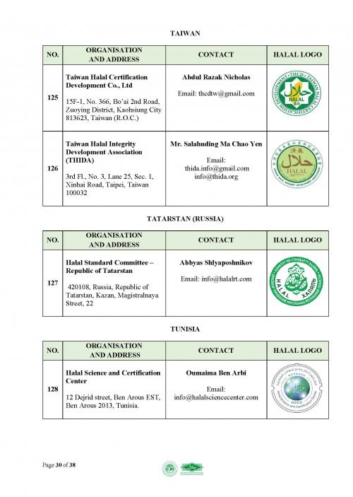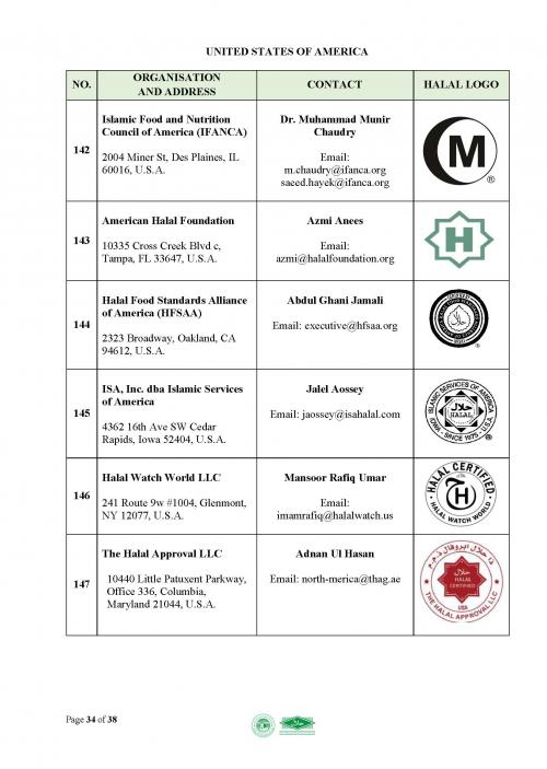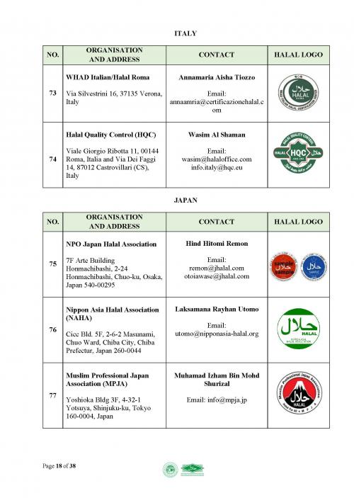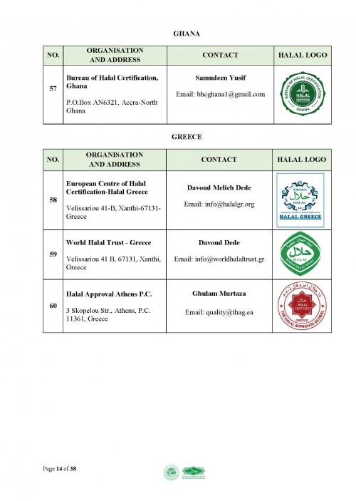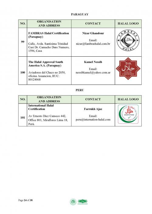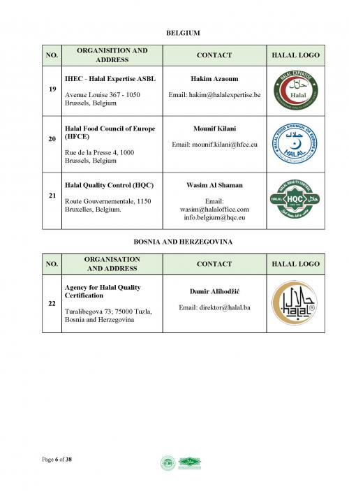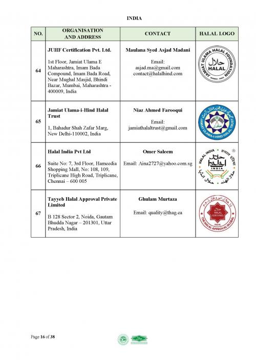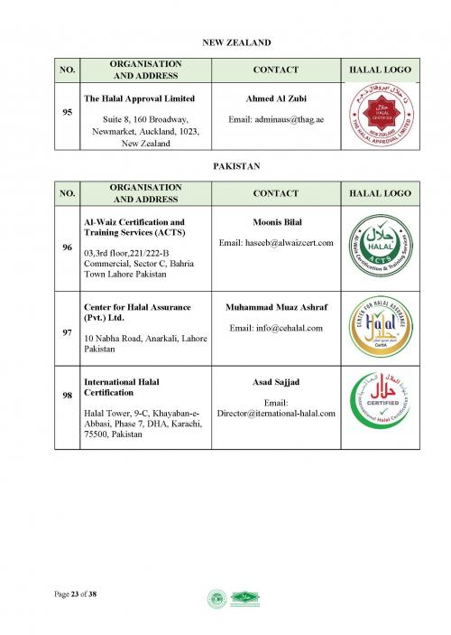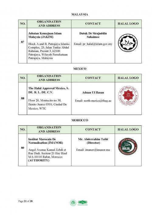 หนังสือรับรองฮาลาลของหน่วยงานรับรองฮาลาลต่างประเทศ ที่ไม่อยู่ในรายชื่อนี้จะไม่สามารถนำมาอ้างอิงเป็นวัตถุดิบหรือส่วนผสม สำหรับผลิตภัณฑ์ที่จะขอการรับรองฮาลาลได้