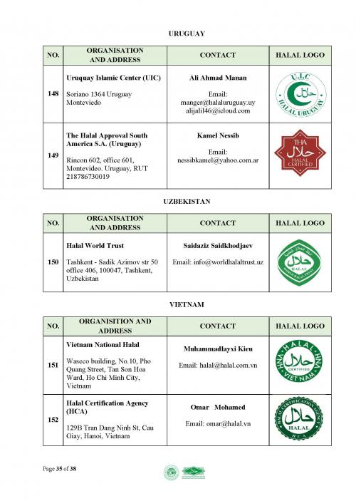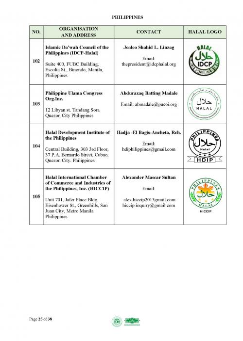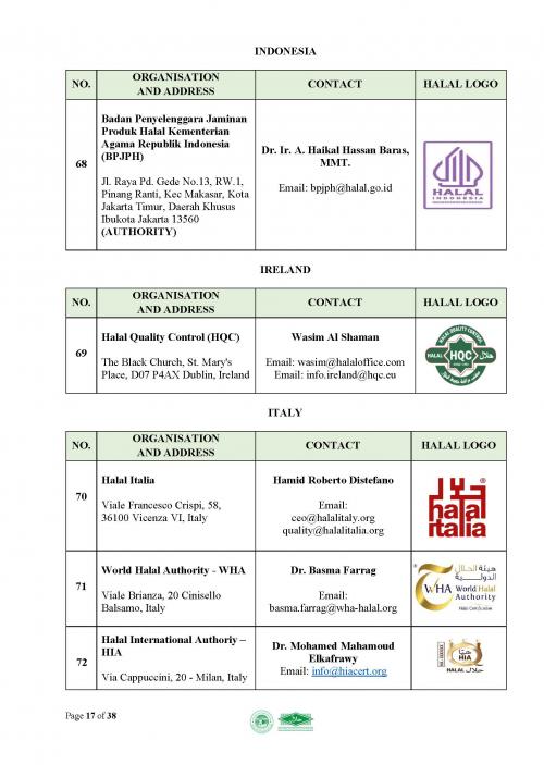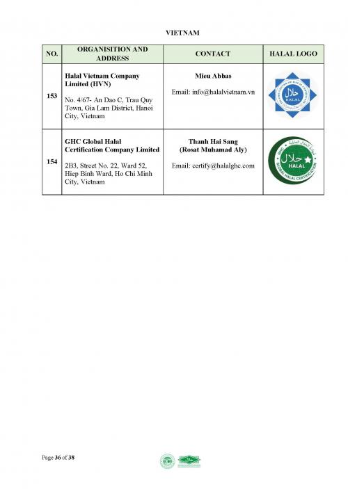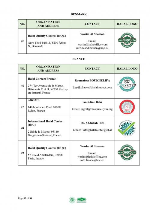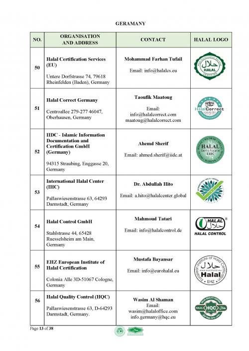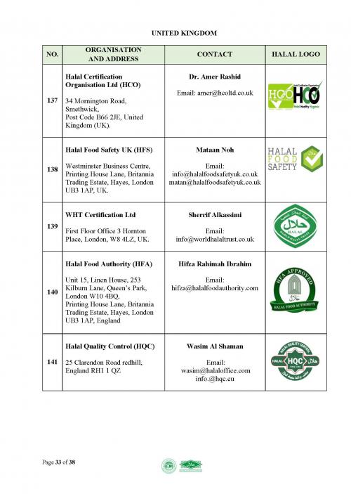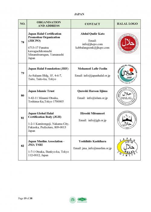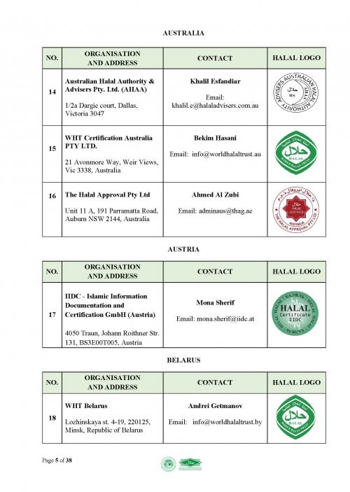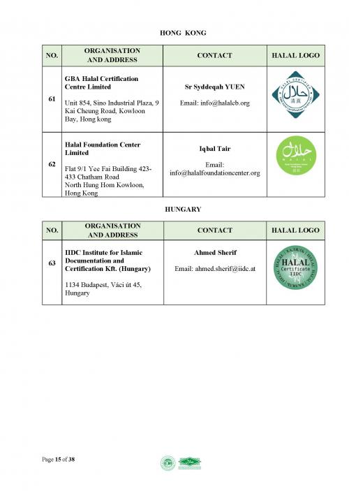 หนังสือรับรองฮาลาลของหน่วยงานรับรองฮาลาลต่างประเทศ ที่ไม่อยู่ในรายชื่อนี้จะไม่สามารถนำมาอ้างอิงเป็นวัตถุดิบหรือส่วนผสม สำหรับผลิตภัณฑ์ที่จะขอการรับรองฮาลาลได้