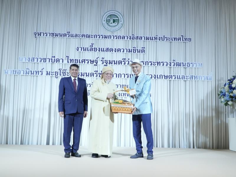 งานเลี้ยงแสดงความยินดี เนื่องในโอกาสที่ นางสาวซาบีดา ไทยเศรษฐ์ ได้รับพระบรมราชโองการโปรดเกล้าฯ ให้ดำรงตำแหน่งรัฐมนตรีว่าการกระทรวงวัฒนธรรม และ นายอามินทร์ มะยูโย๊ะ ได้รับพระบรมราชโองการโปรดเกล้าฯ ให้ดำรงตำแหน่งรัฐมนตรีช่วยว่าการกระทรวงเกษตรและสหกรณ์