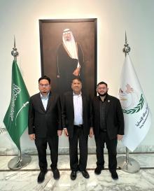 พล.ต.ต.สุรินทร์ ปาลาเร่ เลขาธิการคณะกรรมการกลางอิสลามแห่งประเทศไทย พร้อมด้วย ดร.อาลี คาน รองเลขาธิการฯ/ประธานฝ่ายต่างประเทศ และดร.มูหัมหมัดอามีน เจะหนุ ผอ.สถาบันมาตรฐานฮาลาล